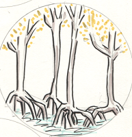 This mixture of environments mean that the territory is wildly abundant in marine life. Then mangroves provide an excellent environment for small marine life, and the shielding effect of the mangrove mean it contains both breeding grounds for deeper saltwater creatures as well as freshwater. From smaller creatures such as shellfish, crustaceans, bivalves, and insects to basically anything that preys on them, such as birds, reptiles, amphibians, and a wide variety of fish. Perhaps alarmingly, your pathfinders report seeing both alligators and crocodiles in the territory.